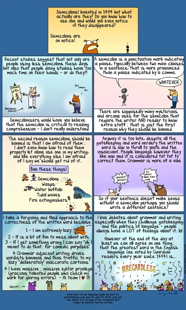One of the reasons I like First Dog is that he often goes out of his way to annoy the sorts of people who get upset about idiomatic-but-ungrammatical expressions. And misuse of semicolons. And, you’ll note here, the word “irregardless.”