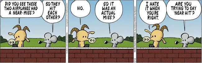 3. There is a reason to use the phrase “near miss”. My familiarity is: During World War II, if a bomb landed next to a naval ship, and didn’t hit it, but the bomb was still close enogh to cause damage, it was a near miss.