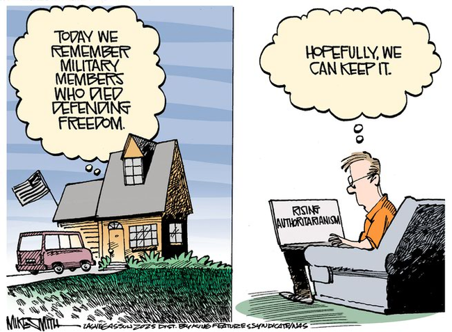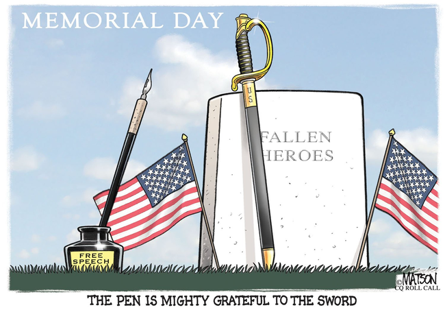 As for cartoons of people saluting gravestones, I saw a few but I’m not featuring them, in part because it’s a sentimental cliche and in part because I have doubts about civilians saluting.