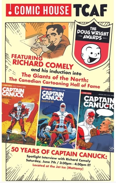 Richard Comely was also inducted into The Canadian Cartoonists Hall of Fame. His Captain Canuck was distributed throughout Canada and the United States during the 1970s (it was part of my regular picks).