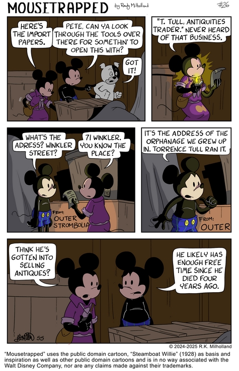 Randy currently creates the Sunday Popeye, a weekly (Thursday) Olive and Popeye installment, the Something Positive webcomic, and the Mousetrapped webcomic starring the public domain Mickey Mouse.