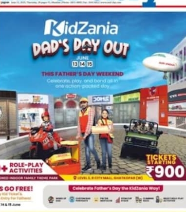 That morning, the Mid-Day newspaper, also popular in Gujarat, featured a large advertisement on its front page promoting KidZania’s upcoming Father’s Day weekend event. KidZania, an indoor miniature city designed for children aged 4-16, allows kids to role-play real-world professions like pilots, doctors, chefs, and engineers.
