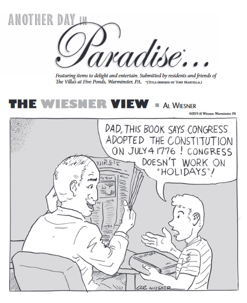For at least ten years Al had contributed a panel cartoon to The Villa’s Voice, a monthly neighborhood newspaper. His comic continued until March of 2020 when the community newsletter took on a different manner of publication due to the Covid-19 pandemic.