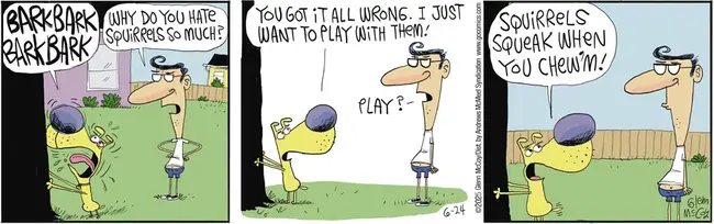 Here’s another joke about death, which explains a major theory about why dogs enjoy toys that squeak, which is quite possibly correct. It might also explain the dogs who immediately tear the squeaker out of a toy and then consider the game over.