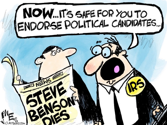 Steve was a very conservative political cartoonist and a member of the Mormon hierarchy, as he was the grandson of Ezra Taft Benson, the President of the Mormon Church, who Steve claimed in 1993 was suffering from senility at the age of 93, and said the church was covering it up. Later, Steve left the church and somewhere along the way, started drawing liberal cartoons.