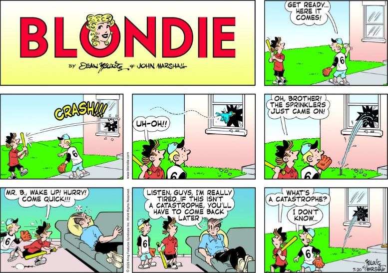 Blondie joins Dennis the Menace, Curtis, Marvin, Popeye, and Mary Worth in the two panel sized comic strip titles, leaving behind the one panel titles as seen with Beetle Bailey, Barney Google and Snuffy Smith, Hagar the Horrible, and Mark Trail.