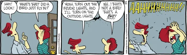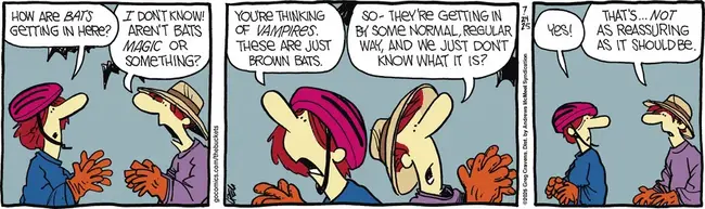 And Larry’s right: They get in some normal, regular way you don’t know. A bat can squeeze through tiny places only an octopus could fit, the difference being that an octopus would have more sense than to try.