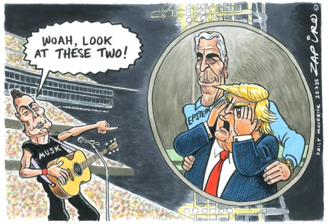 I like Zapiro’s Coldplay cartoon because he brings in the factor of how the couple was mocked from the stage, though by the time it ran in South Africa earlier this week, Musk’s revelation was a bit stale.
