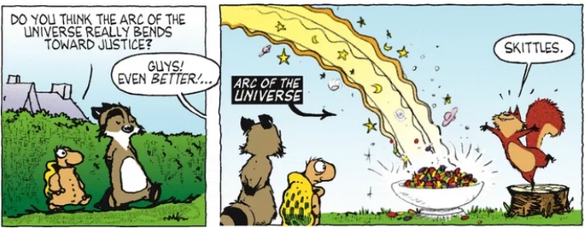 Does the Arc of the Universe bend toward Justice? Hammy has the answer: