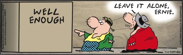 … from an anecdote about Harry Hershfield, the creator of Abie the Agent. As he told it, there was a point in the early 20th century when newspapers started adopting the use of bylines institutionally. He approached his editor, Arthur Brisbane at the New York Journal, and asked if that meant he could start signing his work. “My strips appear in the paper; doesn’t that make me a newspaperman?” Brisbane snarled back, “Is a barnacle a ship?”