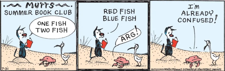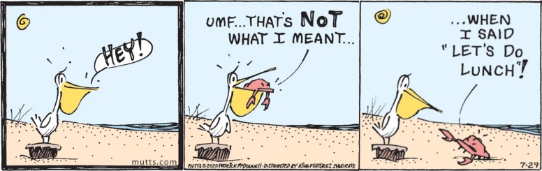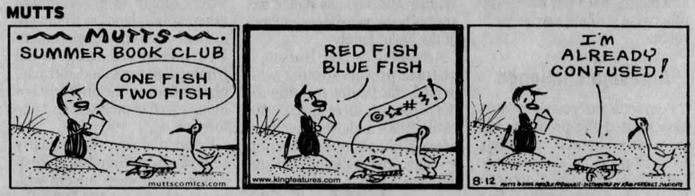 I would forward the notion that Patrick has decided to muffle Crabby’s foul mouth but the upcoming weekend Mutts has strips featuring the uncensored Crabby. So why this temporary suppression of Crabby’s first amendment rights?