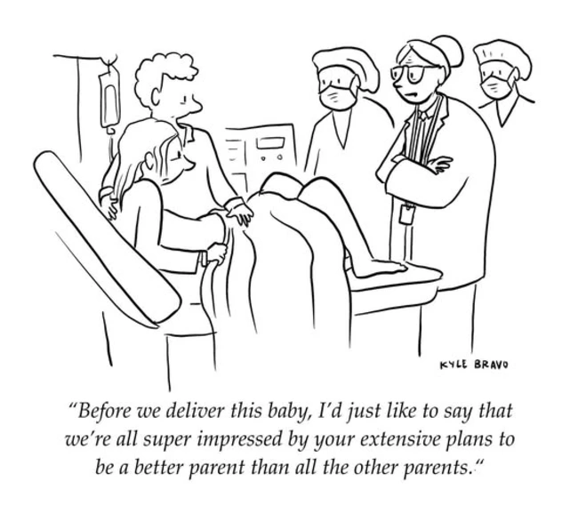 Our first OB/GYN, a noted expert in natural childbirth, urged us to relax because our kids would be just fine, in spite of, not because of, the decisions we made. Obviously, this doesn’t include either total neglect or outright abuse, but Bravo’s mocking of parental expectations is on target.