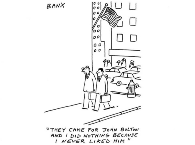I think perhaps John Bolton was fully expecting the DOJ Inquisition, though he might also have been expecting someone to speak up more forcefully on his behalf.