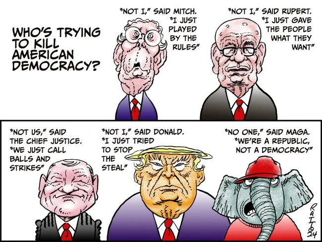 I hope Ratt is right that they are trying to kill American democracy, because there are signs that it’s no longer an attempt but a finished fact.
