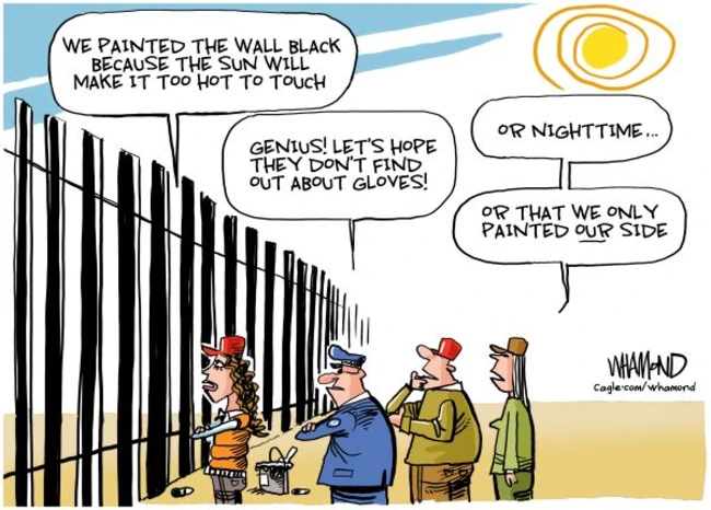Fawning and flattery seem to be cabinet members’ jobs, while the departments they are named to head must largely run themselves. For example, the Secretary supposedly in charge of Homeland Security dresses up and does things like painting the wrong side of a fence that is, itself, more performative than practical.