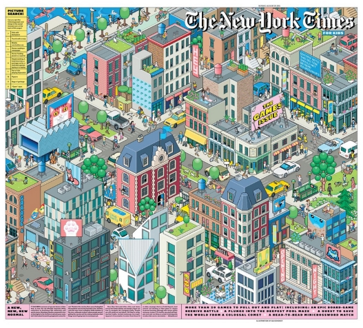 The New York Times is dedicated to innovating in print, and the singular, print-only broadsheet sections produced by The New York Times Mag Labs is one example of that. The New York Times for Kids is published monthly, with a new issue in the paper on the last Sunday of each month. Since their inception in 2016, these sections have become a much anticipated feature of the Sunday paper. The New York Times for Kids section aims to entertain and stimulate children while engaging them creatively with the news – all without talking down to them.