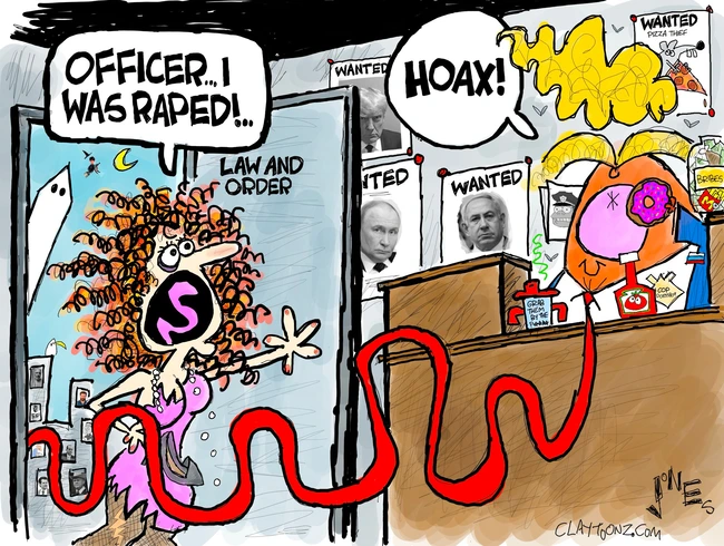 A “hoax” is anything that makes Dear Leader look bad. It has nothing to do with “true” or “false” except that we’re in a governmental system in which anything the President wants is true and anything he doesn’t want is false, and he’s retooled the Justice Department not to see that the law is obeyed but to make sure his wishes are.