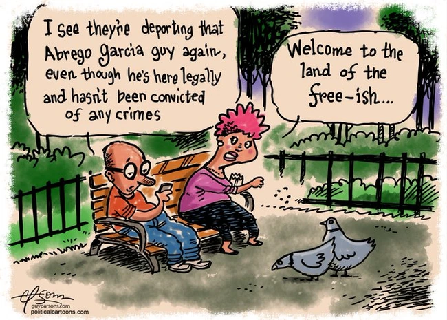 For example, the courts have forbidden him to deport Kilmar Abrego Garcia, but he wants to anyway, the law and the Constitution be damned. I would be surprised if the courts prevailed in this matter and you should be, too.