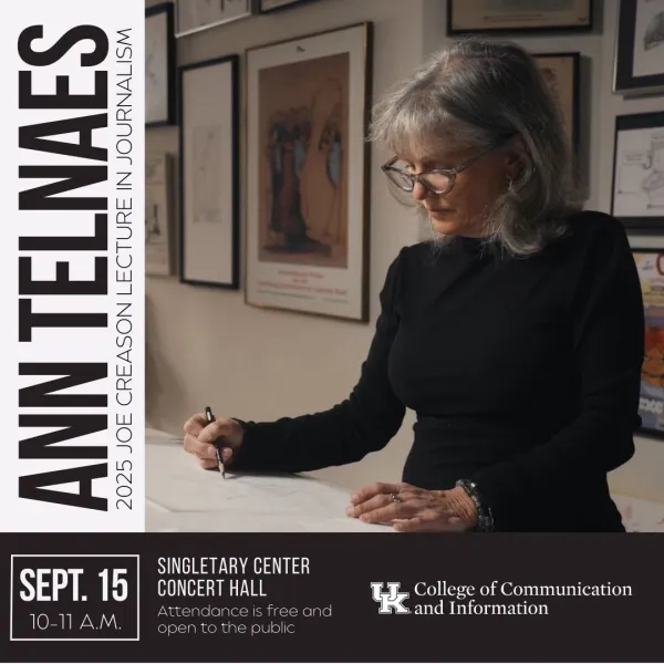 The lecture, presented by the University of Kentucky School of Journalism and Media, will be 10-11 a.m. Monday, Sept. 15, in the Singletary Center for the Arts Recital Hall. Attendance is free and open to the public.