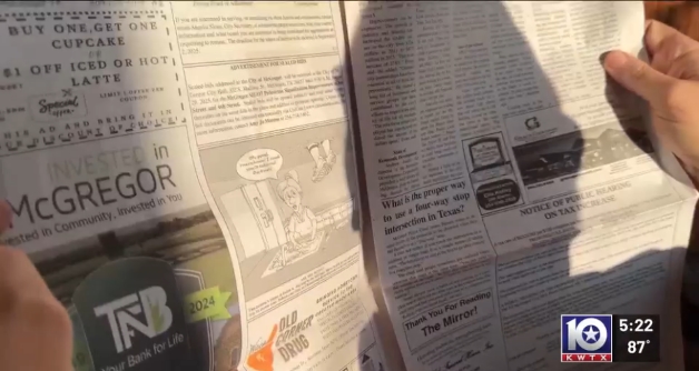 Julie Hays at KWTX reports on Jon Brown getting his caption contest cartoon in the weekly McGregor Mirror.