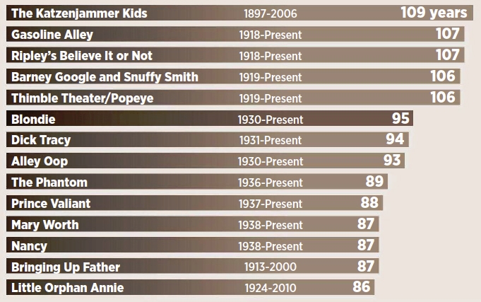 The Spokane Spokesman-Review has updated their longest running American comic strips chart with the titles now included.