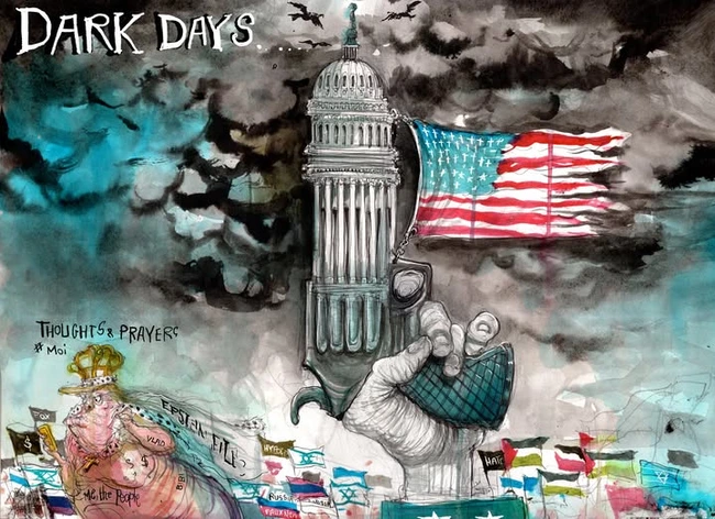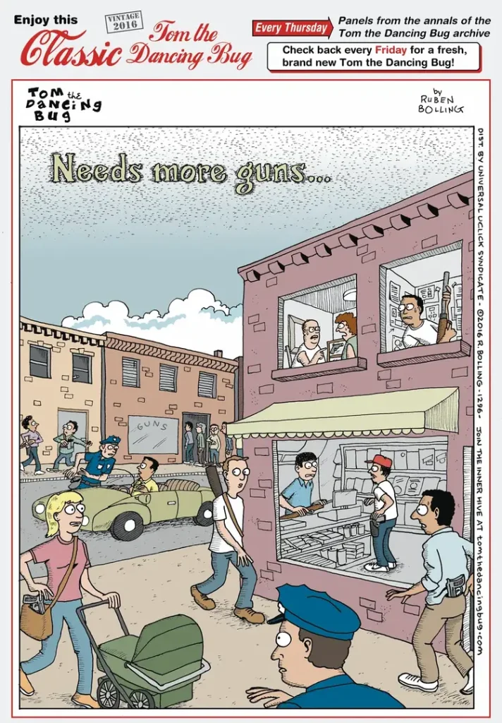 Boris is more specific in his response, and whether he was already hearing the usual empty thoughts and prayers or just anticipating them, he scores. It’s a good cartoon, but it wasn’t much of a gamble, which is why Uncle Sam is justified in his anger and despair.