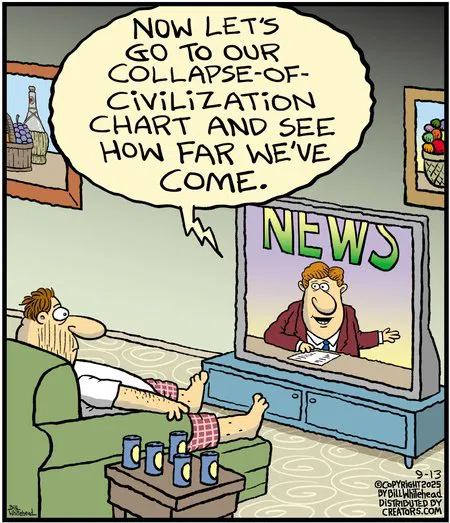 Skip to commentsThe gag here is that the scale doesn’t go that far, though if Whitehead realized that when he drew this cartoon he’d have added more beer cans.