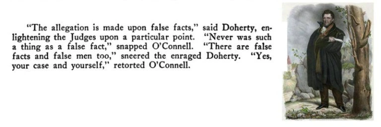 There was a time when facts were true and things that were false were not facts. Daniel O’Connell made a famous joke on the topic in an Irish courtroom, at the expense of his opponent.