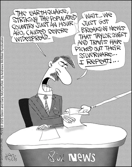 I know Liniers is kidding in Macanudo, because he’s incredibly curious about everything. Not so sure about the Flying McCoys, because they seem to be taking a slam more at the media than at Taylor and Travis.