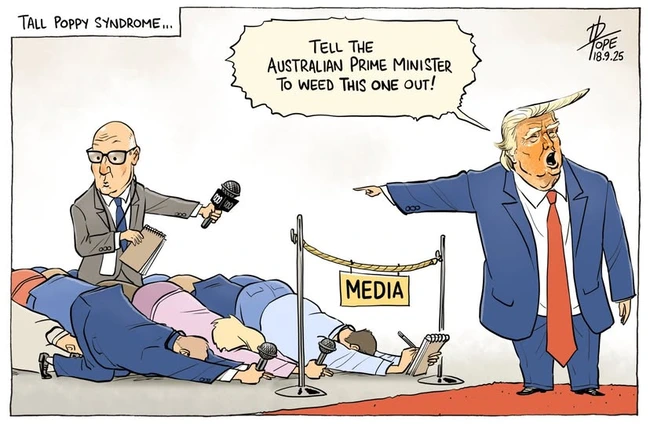 Le Lievre, Pope and other Aussies had the example of John Lyons of the Australian Broadcasting Corporation, who had the nerve at a White House presser to ask Trump how much he had benefited financially since returning to office. Trump scolded him and then tattled on him to Australia’s Prime Minister.