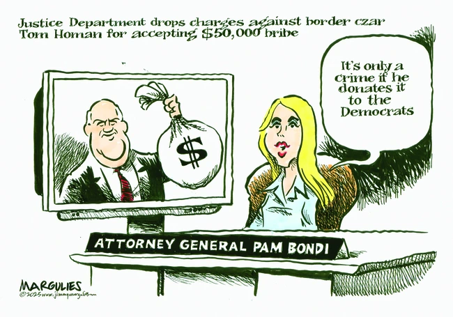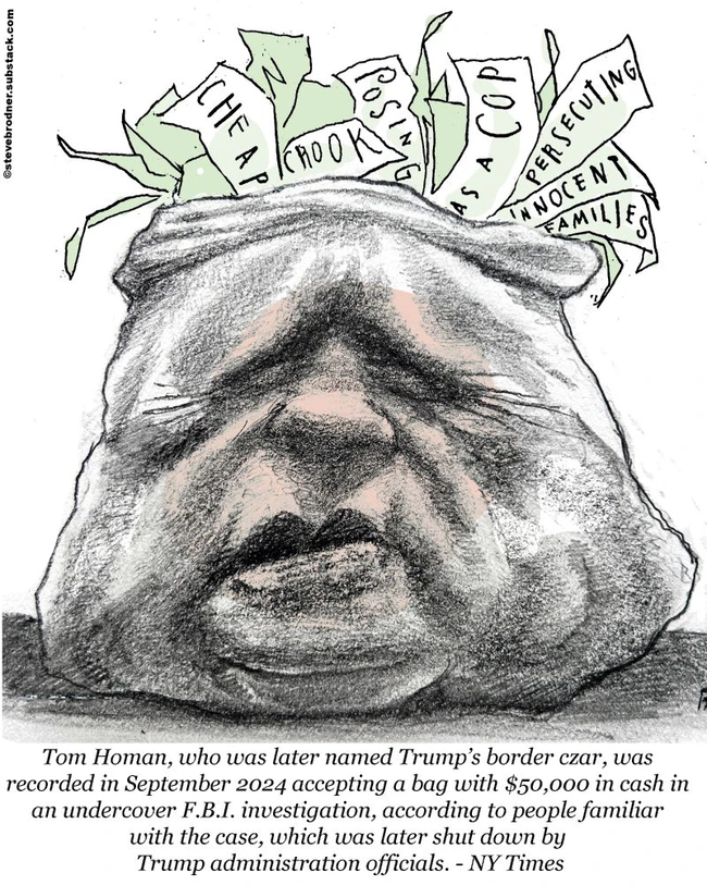 Another example of selective prosecution seems to be at work with Border Czar Tom Homan, who got caught very literally holding the bag: A paper bag filled with cash, which was part of an FBI sting.