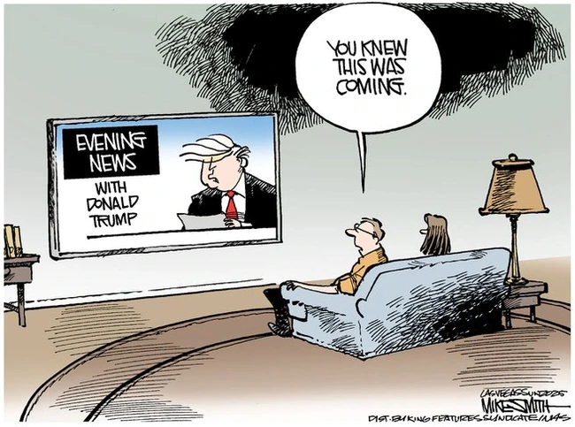 Smith exaggerates Trump’s goal, or maybe not, given how much he enjoys being on the air. His goal, however, is to control what people see and hear, and, he hopes, what they think.