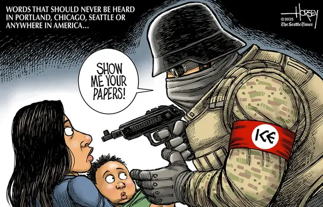 Can you imagine a masked marine? It is a matter of honor — and honor still matters. To us, masks are associated with cowardly desperados and the despised Ku Klux Klan. In all our history we have never tolerated an armed masked secret police. Carrying on in this fashion, ICE brings indelible obloquy to this administration and everyone who works in it.