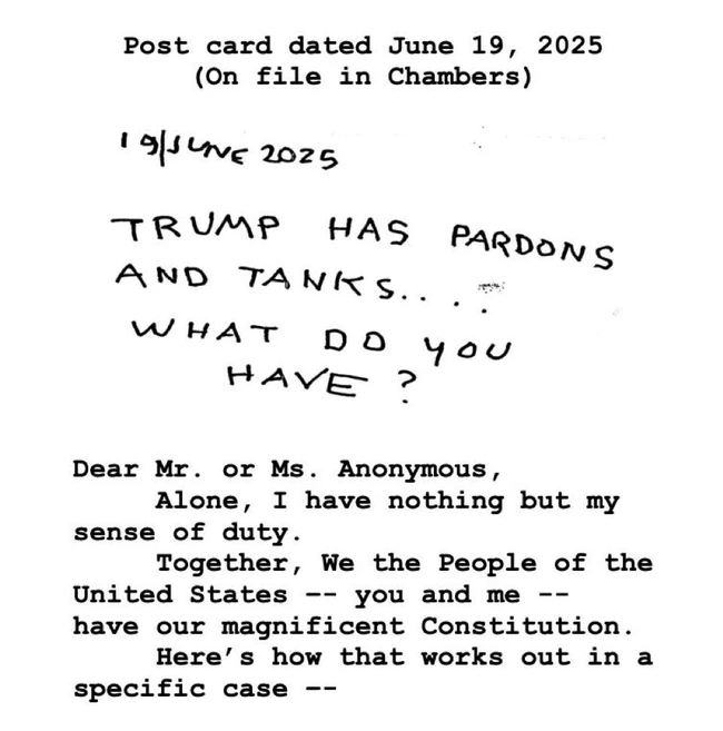 To bring a note of some optimism into an otherwise bleak discussion, Joyce Vance wrote last night of a stunning slap-down delivered by a senior judge in Boston in a case about the First Amendment rights of foreign students, to which he attached the above note and in conclusion of which he wrote