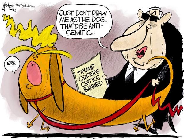Also, you will remember that the reason the notorious cartoon of Trump walking the dog being considered antisemitic is that the Bibi caricature wore a big mogen david and Trump was wearing a Kippah, which implied he was a slave to the Jews.