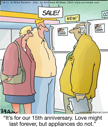 Now I’d say 15th Anniversary is about right. I’ve been in this apartment for 16 years and we’re on the third refrigerator, having replaced the original a year after I moved in.