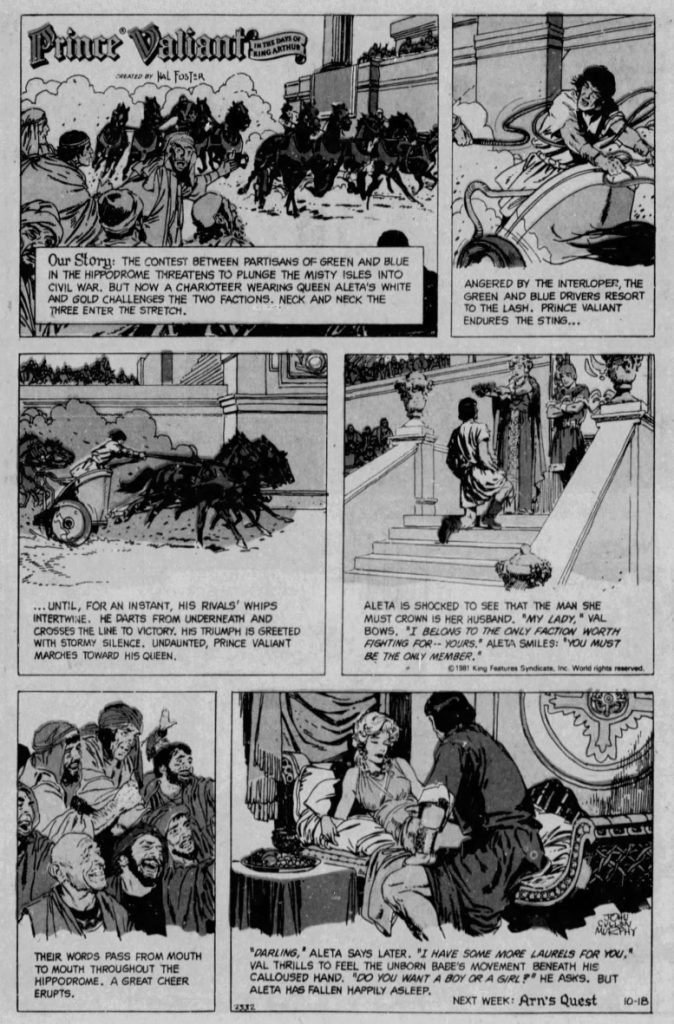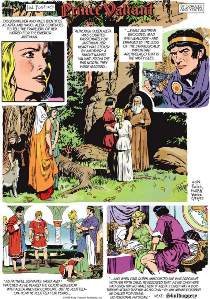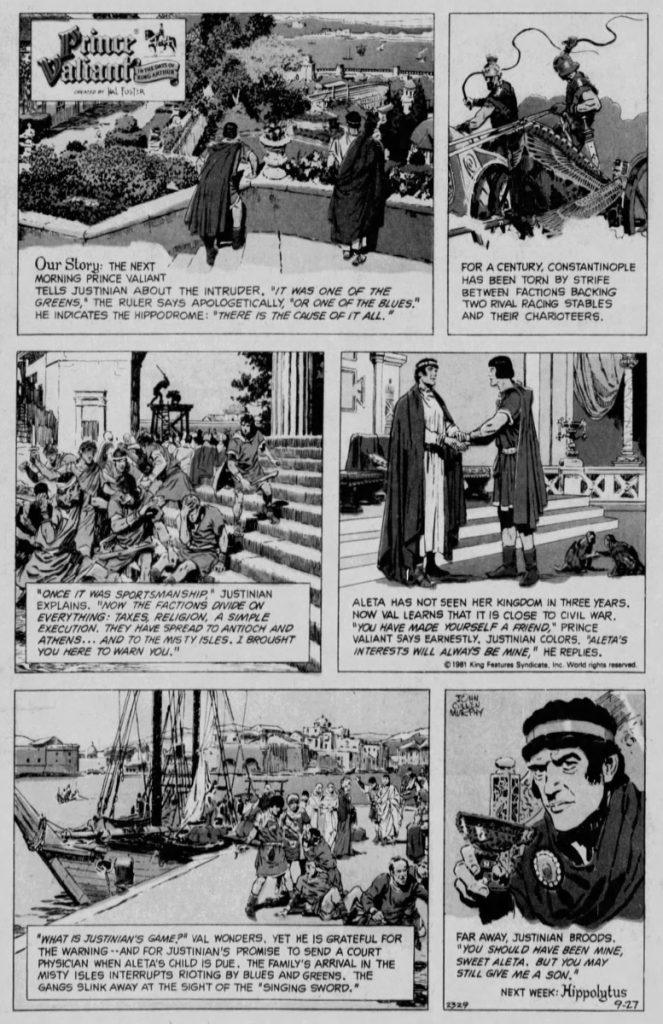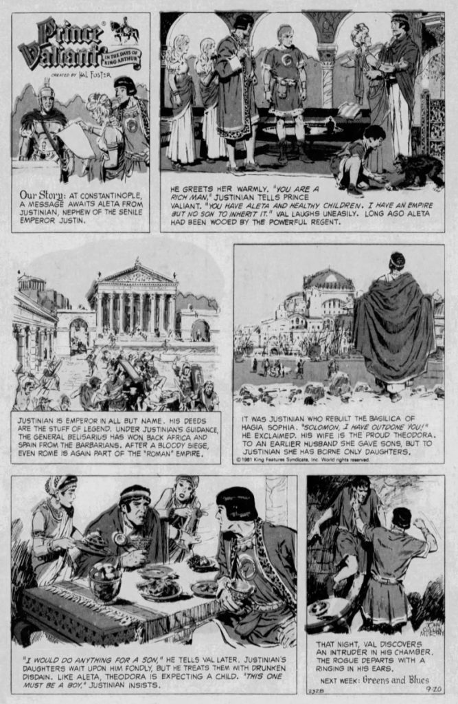 The Justinian story by the father and son Murphy team can be read in Fantagraphics Prince Valiant books or as part of the Comics Kingdom’s Vintage Prince Valiant.