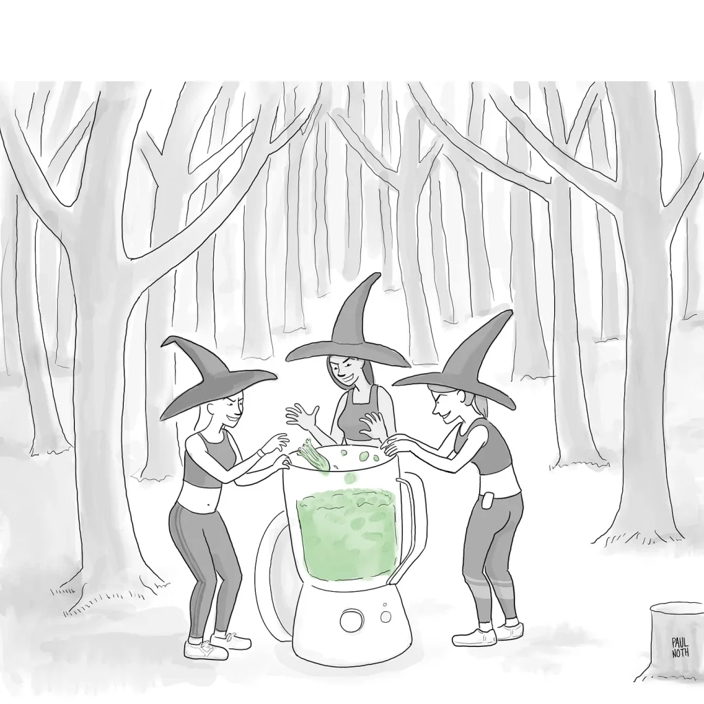 I worked in an office with a bunch of very nice young women who did not wear pointy hats but were obsessed with smoothies, which are good for your body but not so good for wall-to-wall carpeting, as a result of which we had several massive stains that were the result of inevitable spillage.