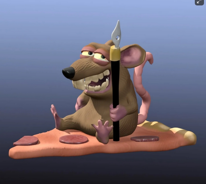 Peezy, the pizza rat, is editorial cartoonist Clay Jones‘ dingbat that appears in his political cartoons.