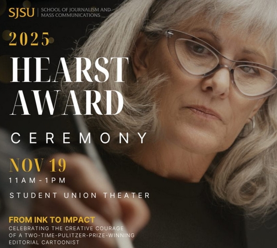 This November, the School of Journalism and Mass Communications at San José State will honor award-winning editorial cartoonist Ann Telnaes with the 2025 William Randolph Hearst Award in recognition of her career as a journalist. One of the most influential editorial cartoonists today, Telnaes won the Pulitzer Prize in both 2021 and 2025 for her sharp visual storytelling and unflinching political critique. She worked for The Washington Post from 2008 until 2025, when she resigned after the newspaper refused to run one of her cartoons.
