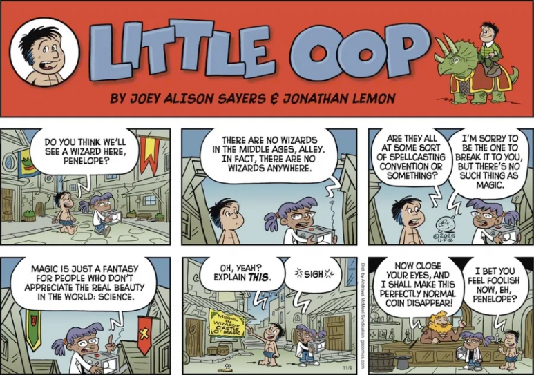 On an anniversary day Penelope in Little Alley Oop claims another comic character doesn’t even exist.