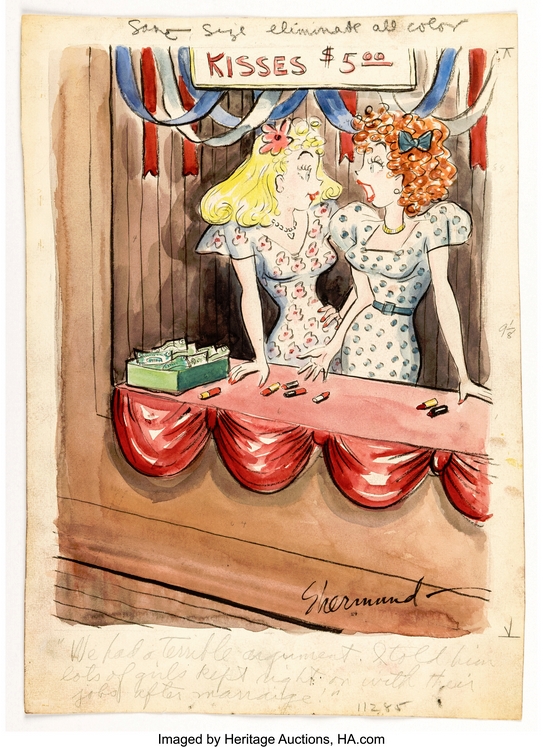 Below the Original Shermund cartoon alongside the cartoon as it appeared in the Pictorial Review of June 1, 1947 via newspapers.com (ignore the Jan. ’49 date from Heritage Auctions notoriously lousy research team).