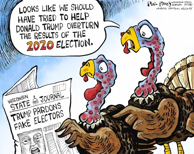 Skip to commentsThis time of year invariably produces a flood of turkeys attempting to avoid the ax, but Hands breaks tradition and makes an actual point, based on Dear Leader’s pardoning of those who worked to overturn the legal results of the 2020 election, which matches the pardons he provided for the rioters who stormed the Capitol with the same traitorous goal.