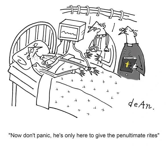 We used to call it “extreme unction” and I don’t remember anything about “moderate unction,” but I do know that, at some point, they quit just blessing the dying and started blessing people for any sort of semi-serious anything, which is to say that I think you had to be admitted. They weren’t out in the waiting room praying over people there.