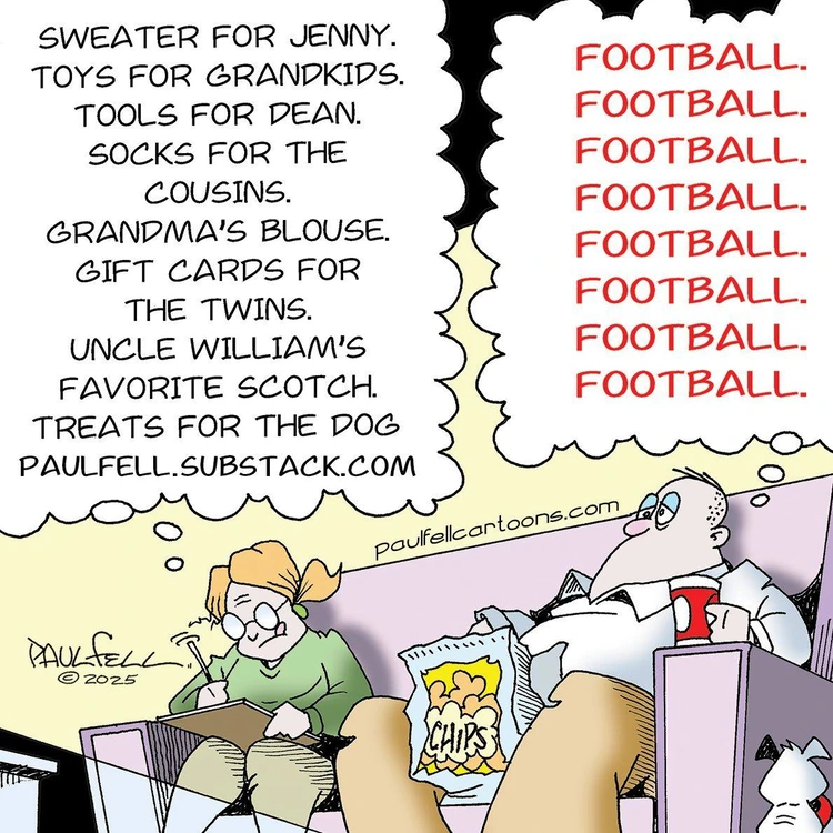 Finally, not to pick on Fell because there were a million similar comics about hard-working women and goof-off guys, but they reminded me that, when my boys had left home and it was just me and the dog, I really missed “doing” for people.