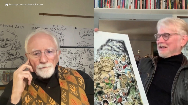First up is a wonderful discussion between Kevin KAL Kallaugher and David Horsey about the history of editorial cartooning and the changes over their almost 50 years each in the profession.