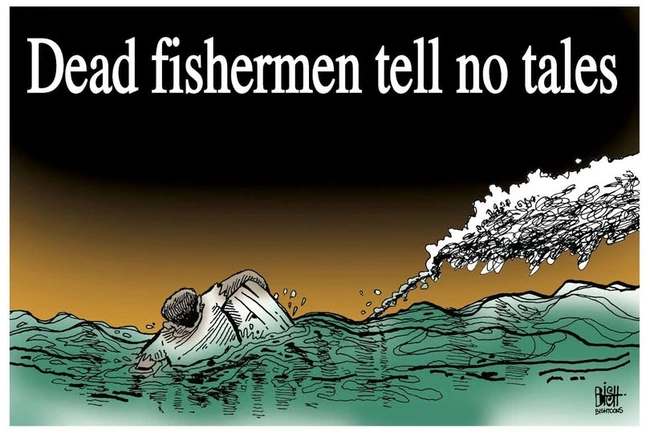 They haven’t explained how he was then responsible for the other killings, but I’m sure they’ll think of something, particularly since not only is Congress sniffing around but one of the fishermen’s families has filed a lawsuit.