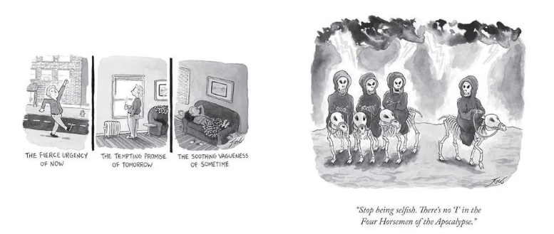 I knew I wanted to include my greatest hits, the cartoons that have gone viral on social media or sold lots of prints, but I also wanted to pepper in weirder ones that never appeared in respectable publications. In that sense, the collection showcases my full range of humor. There had to be a structure to it as well, so I chose cartoons that fit into thematic chapters. But ultimately, each cartoon had to meet the same basic criteria: be very, very funny.