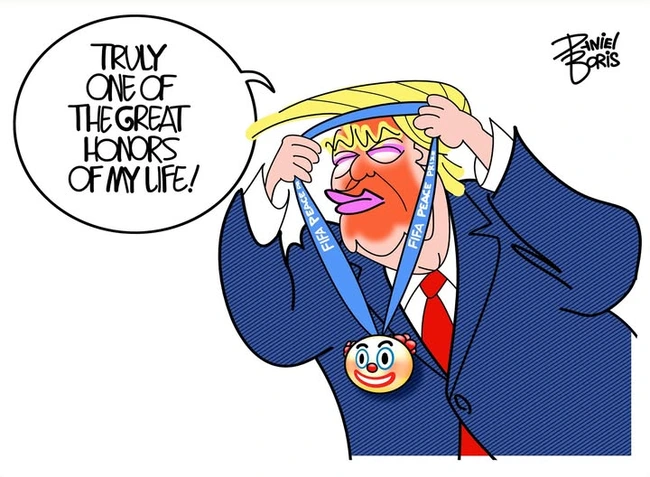 The trophy honors Trump for having halted eleventy-billion wars and being really good-looking and wise and stuff, and for being as hard to flatter as an eight-year-old.