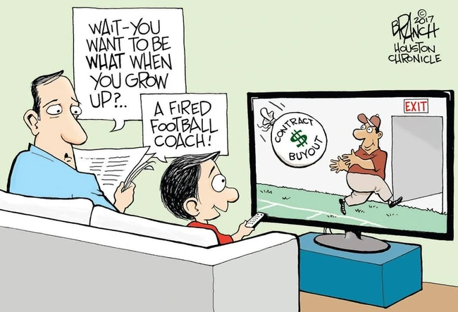Meanwhile, the advice to the little fellow in Branch’s cartoon is that before you can be paid millions to stop coaching a team, you have to prove that you can bring in millions and win a couple of national championships.